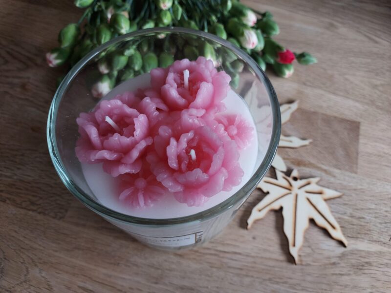 V Pepcu jsem byla pro nějaké podzimní dekorace, ale už měli všude Vánoce nebo Halloween. Nakonec jsem si tam ale dvě svíčky vybrala. Zaujala mě tato zelená sójová Rose & Jasmin a pak jedna květinová s růžovými kytičkami u knotů. Ta se jmenuje Sweet Peony a je z kolekce Dream Garden.
